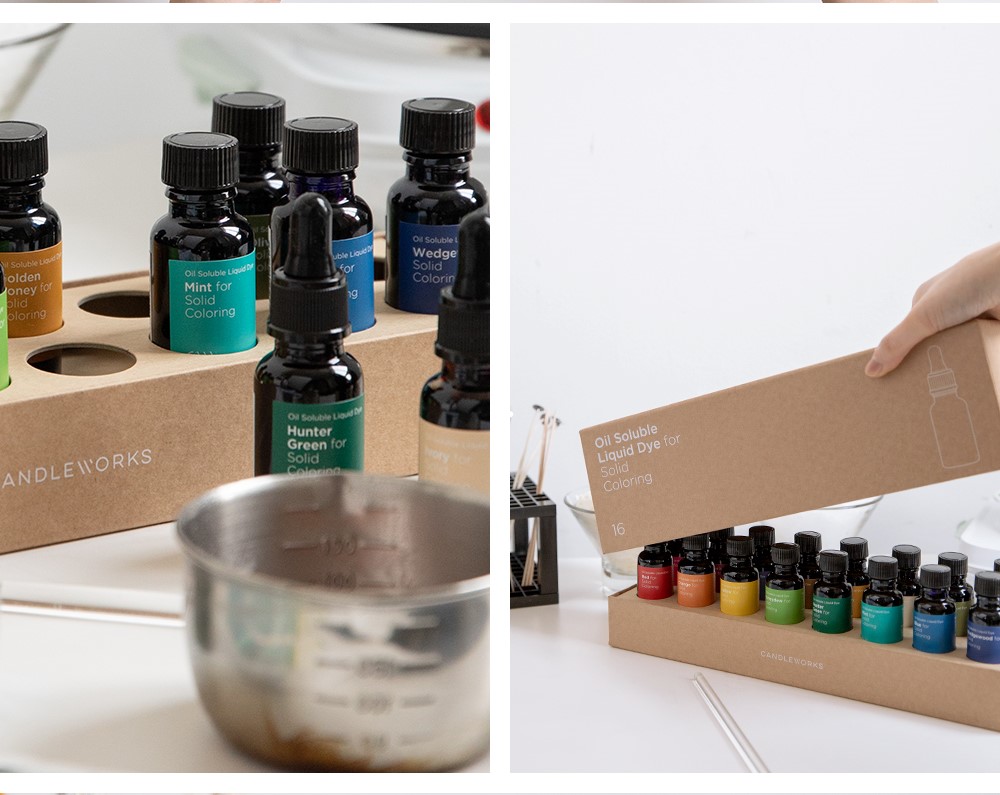 ▪️ Bộ màu nhuộm lỏng tan trong dầu dành riêng cho nến gồm 16 màu sắc đa dạng
